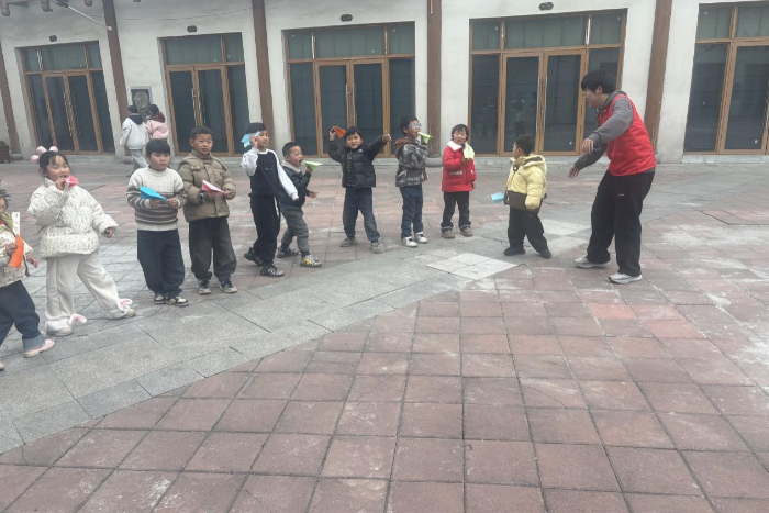 为深化学习效果,课程特别设置了“动手实践体验”环节。孩子们在支教队员范加栋的指导下,亲自动手制作并发射“气球火箭”,在充满趣味的比赛中直观验证反作用力原理,体验科学探索的过程。队员王智还通过“折纸飞机”活动引导孩子们探究飞行器的飞行原理,思考影响飞行的因素。这些实践环节不仅锻炼了孩子们的动手能力和协作精神,更让他们在亲身参与中深刻体会到“实践出真知”的道理。