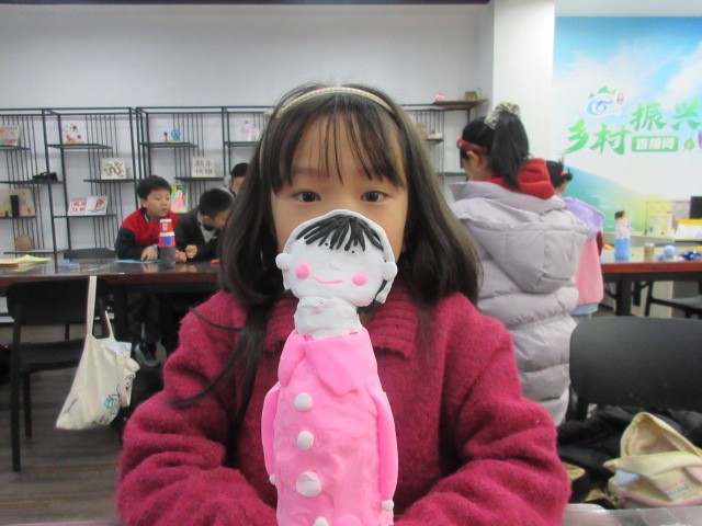 课程伊始,志愿者们安排了一场充满创意的手工活动——“用彩色橡皮泥捏出我自己”。孩子们围坐在桌前,手中拿着五颜六色的橡皮泥,认真地在脑海中勾勒自己的模样。有的捏出戴着眼镜的自己,有的捏出穿着华丽裙子的自己,还有的用橡皮泥做出了自己喜欢的小动物陪伴在身边。志愿者们在一旁耐心引导,鼓励孩子们大胆想象、自由表达。通过这一个个小小的泥人,孩子们不仅展示了自己的个性,也在无形中拉近了彼此的距离。