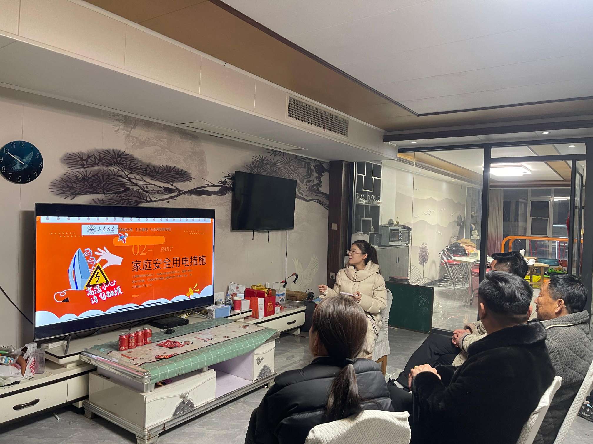 精准对接需求,让“理论宣讲”沾满“泥土气”。冬季是用电高峰期,也是火灾事故易发期。作为电气工程专业的研究生,李君茹敏锐地捕捉到了社区返乡人员增多、用电负荷加大的安全隐患。如何让枯燥的电气知识不再“高冷”,让安全理念真正入脑入心?实践队员没有选择传统的拉横幅、发传单,而是立足支部“精准对接社区现实需求”的要求,将宣讲场景搬到了自家的客厅与邻里的院落。在茶余饭后,借着围坐闲谈的温馨氛围,一场别开生面的“用电安全微课堂”就此开讲。