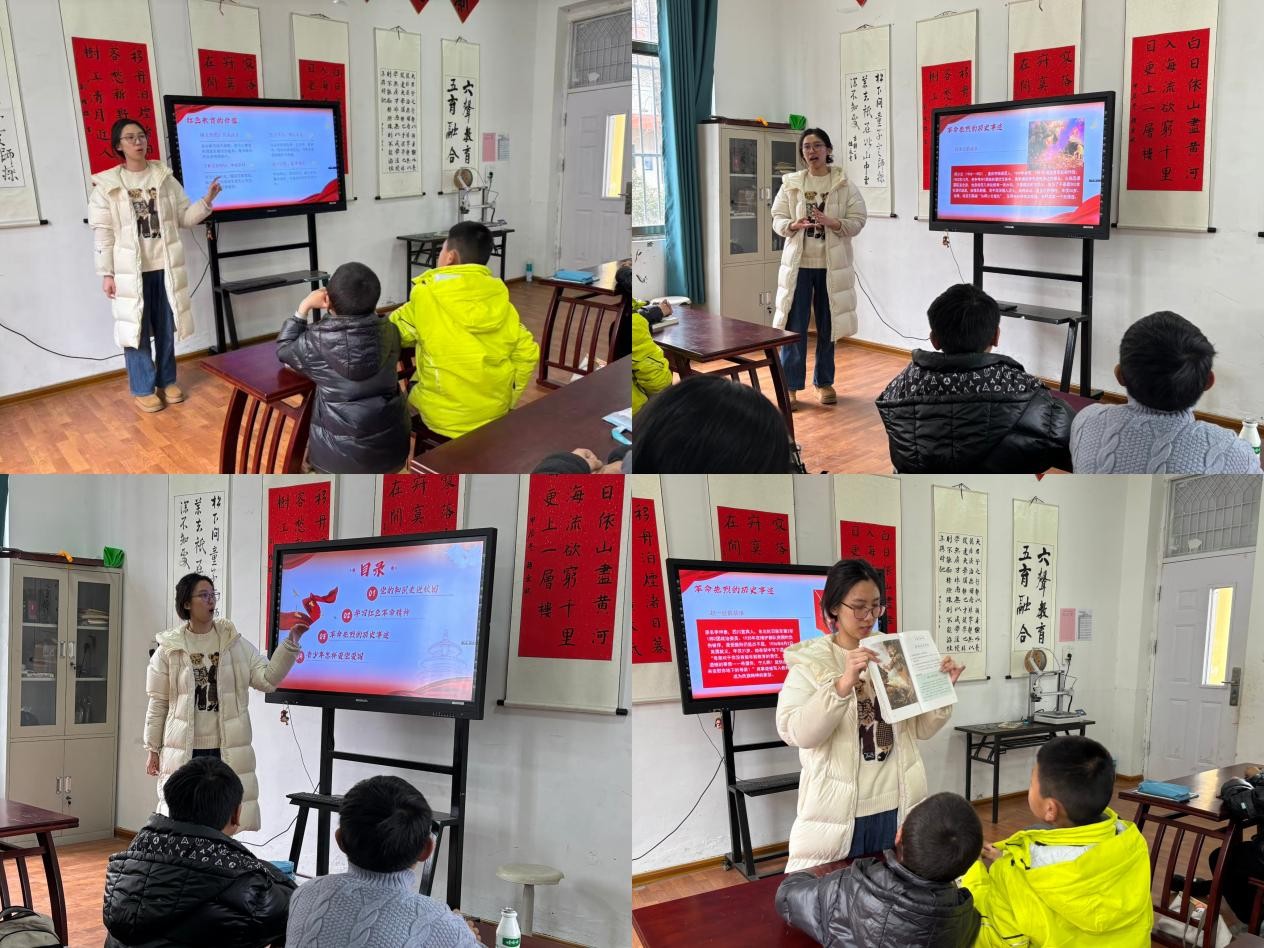 第一堂课为志愿者王俪霏、王丹的红色政治课。她们用通俗易懂的语言,带领孩子们学习党的基本知识,讲述革命先辈不畏艰险、为国奉献的感人事迹。从烽火岁月的英雄壮举,到新时代的奋斗故事,一段段历史在孩子们心中悄然播下爱国爱党的种子。课堂上,孩子们认真聆听、积极互动。红色基因,在无声中传承。
