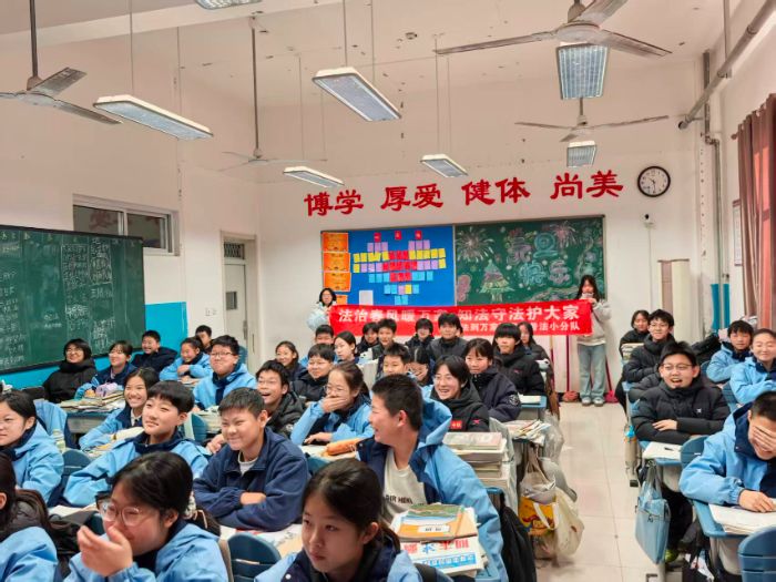 为进一步增强青少年法治观念,筑牢校园法治安全防线,近日,湘潭大学大学生普法志愿者团队走进石家庄市第五十六中学,开展“送法到万家”主题的普法宣传活动,为该校师生带来了一堂生动有趣,干货满满的法治教育课。