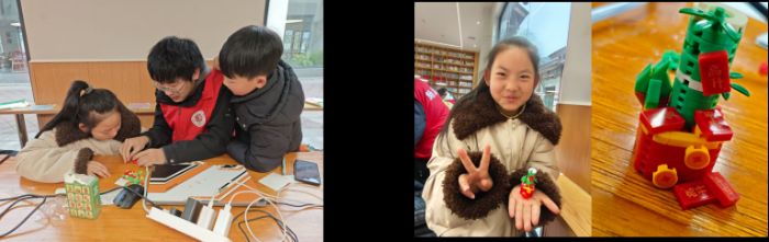 (钱娅迪小朋友和她拼好的积木)