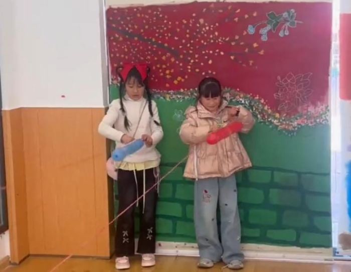 课程的尾声,我带领孩子们开展了气球火箭实验。我提前准备了轨道绳、支撑管和气球,让与同学们共同操作,直观感受原理。实验后,我们还一起探讨了影响气球火箭飞行距离的因素,充气量多少、轨道绳是否绷直、支撑管长短及摩擦阻力大小,孩子们积极思考、大胆发言,不断提出自己的猜想,展现出极强的探索欲。