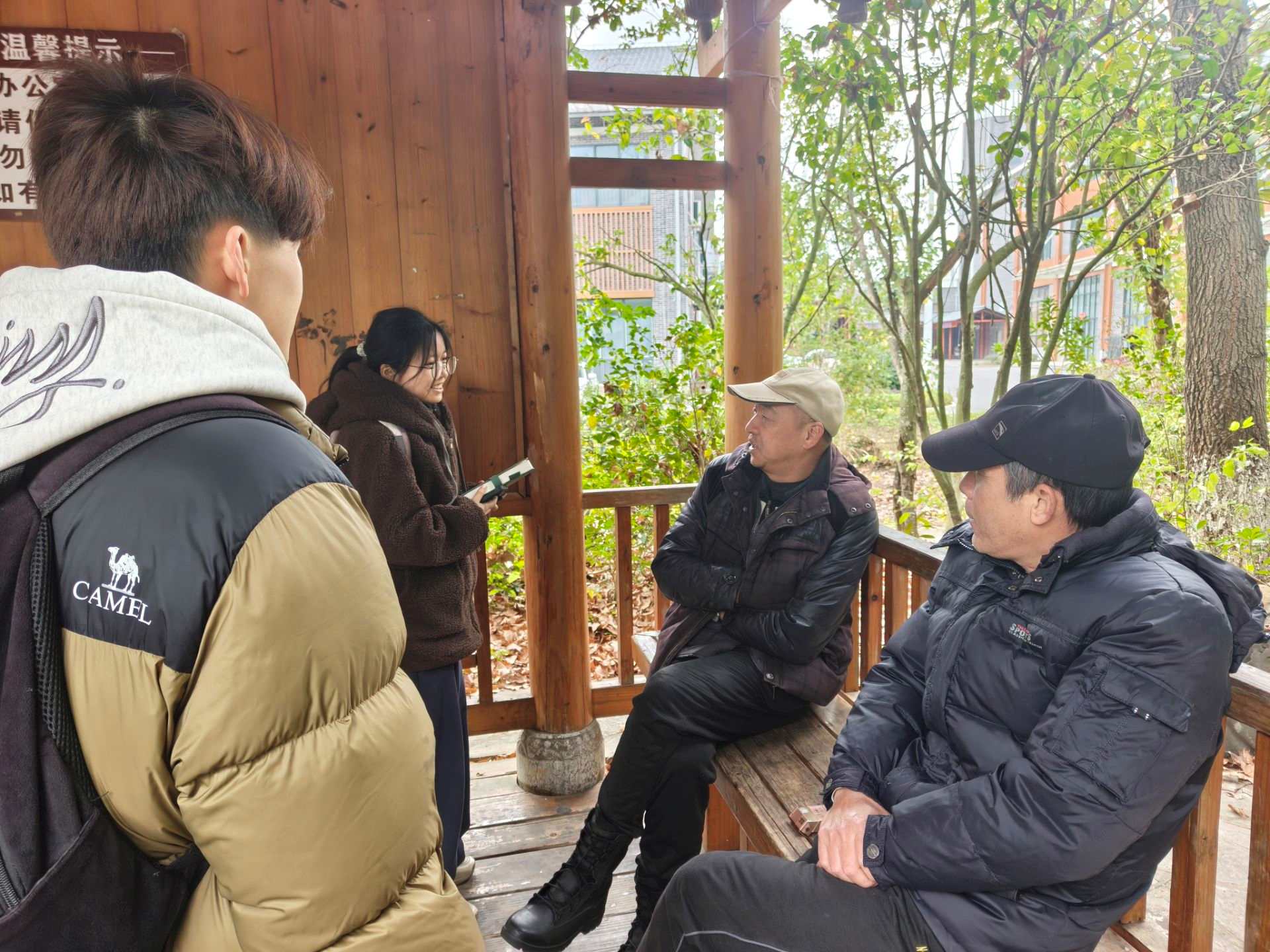 为进一步了解文化传承现状,团队在当地一处木质凉亭内与多位居民围坐交流。居民们结合自身经历,畅谈刘三姐文化对当地青少年的影响、非遗传承面临的挑战及创新方向。团队成员围绕“如何让传统文化吸引年轻群体”等问题与居民深入探讨,现场气氛热烈,为后续实践报告积累了丰富素材。