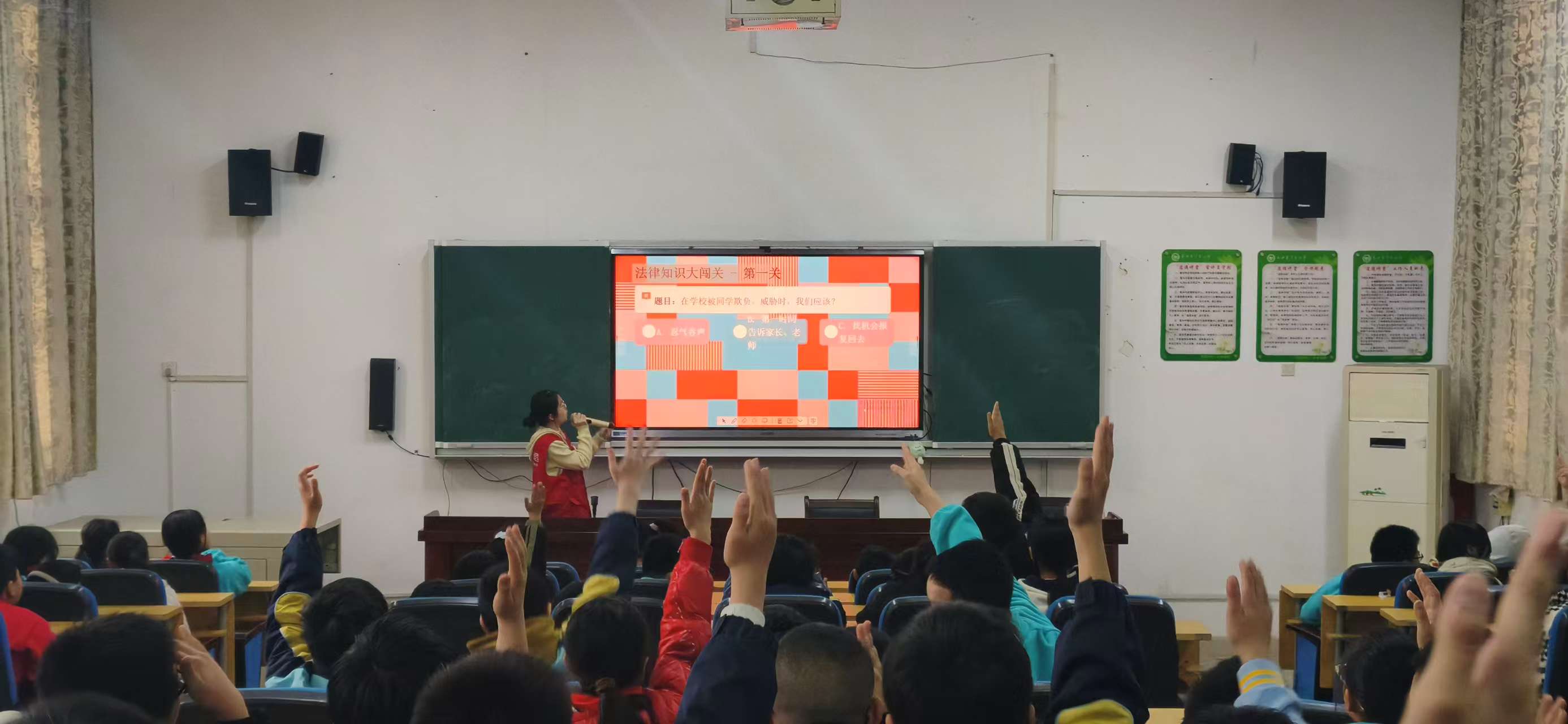 互动环节里,宣讲团队围绕校园欺凌、网络侵权、义务教育法定义务等核心问题设计法律知识闯关游戏,孩子们热情高涨、积极参与、踊跃抢答,在轻松有趣的氛围中巩固所学法律知识。现场还专门普及了 110 报警电话、12348 法律服务热线等官方求助渠道,手把手教会孩子们在遇到权益侵害时,如何运用法律武器合法维护自身权益。