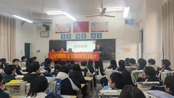 (通讯员:尹鑫 李子萱 杨贝宁 李琦)为进一步增强全民法治意识,营造尊法学法守法用法的良好社会氛围,1月28日,与法同行宣讲团小队成员走进邵东市邵东三中课堂,为学生带来一堂生动有趣的课程。此次活动旨在将法律知识送到大家身边,让法治精神融入大家日常生活。