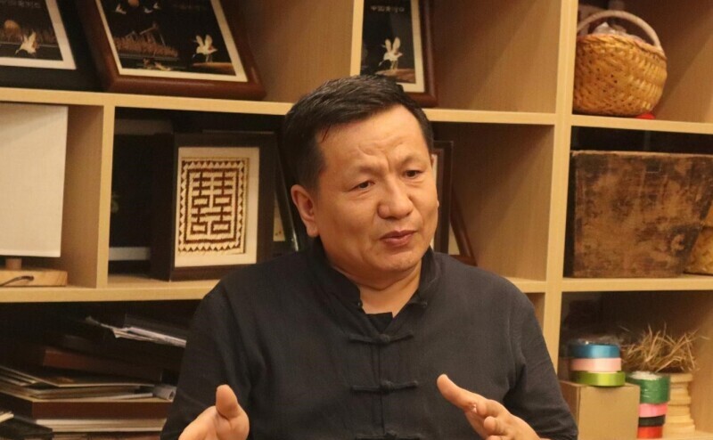图为负责人李光祥讲解苇编的制作技巧。 陈国豪 供图