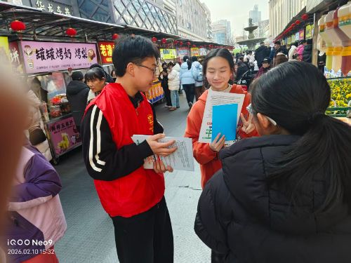 2026年2月9日,常德市武陵区“2026年春风行动暨就业援助季”专场招聘活动火热开展。作为本次活动的重要组成部分,“送法到万家”普法宣传同步进行。来自“护蕊校园”项目团队的志愿者徐传顺积极投身此项综合性民生服务活动,将法律服务直接送到求职者、商户和居民的身边。