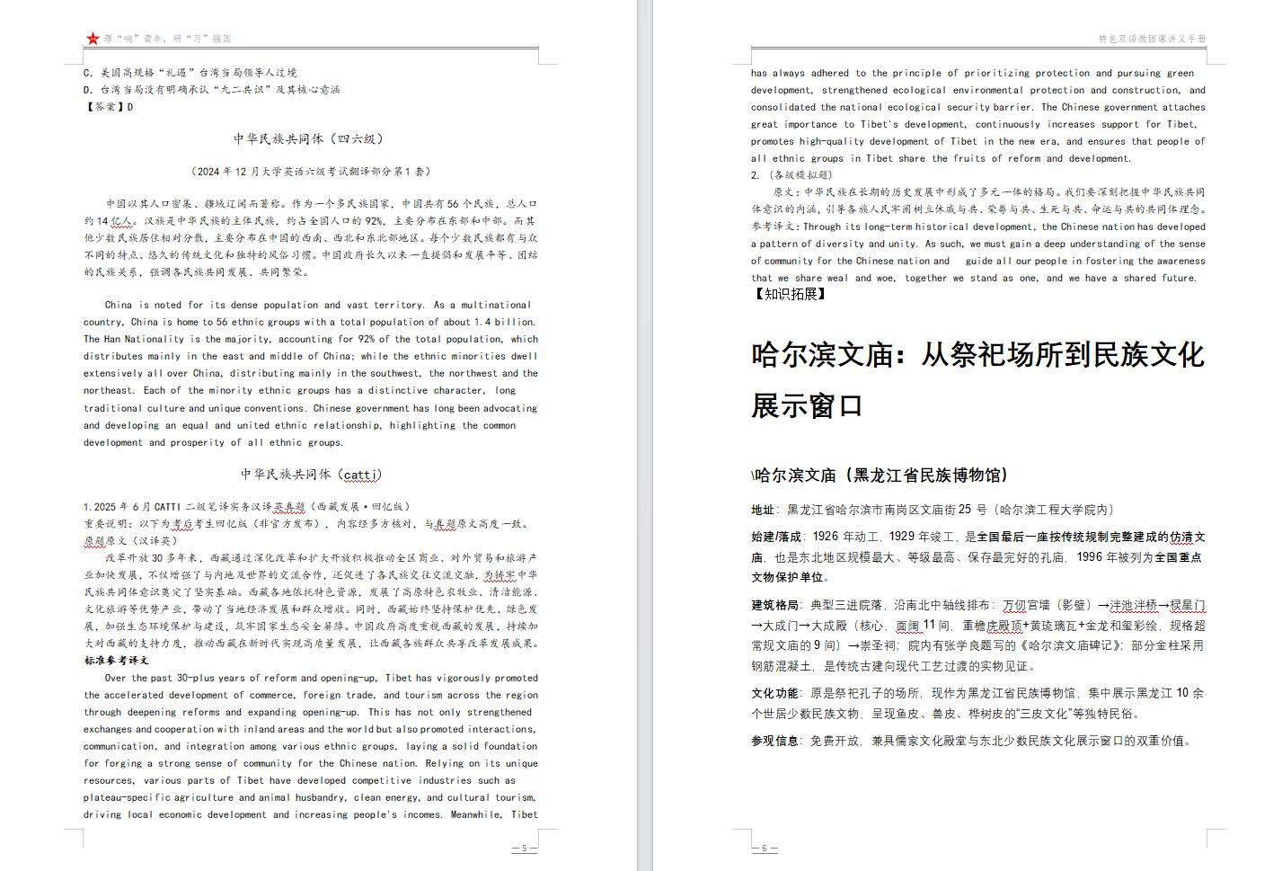 此外,团队建立结构化多语素材库,将课程讲稿、PPT、视频等资源数字化,形成可检索、可复用的线上资源包;构建“学习-转化-创作-传播-反馈”的实践闭环,实现社会实践与教育产品研发的深度融合。目前,团队已完成5期双语微团课制作,配套双语字幕与图文讲解,整理、撰写《特色双语微团课讲义手册》,新媒体矩阵初步积累粉丝与互动数据,实现成果的可复制、可推广。