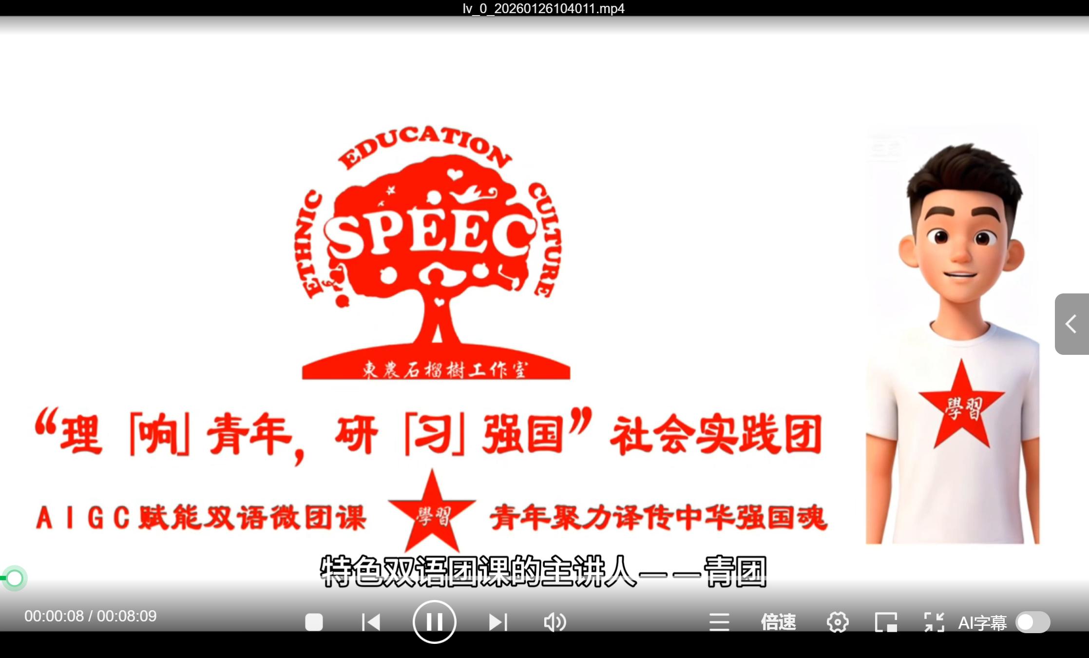 为深入学习宣传习近平新时代中国特色社会主义思想和习近平文化思想,东北农业大学文理学院理“响”青年双语研“习”团以2026年寒假“三下乡”社会实践为契机,打造AIGC赋能的双语微团课多模态传播实践项目,以“理论为基、语言为桥、实践为炉”的融合模式,推动党的创新理论青年化阐释、国际化传播,为乡村文化振兴注入青春动能。