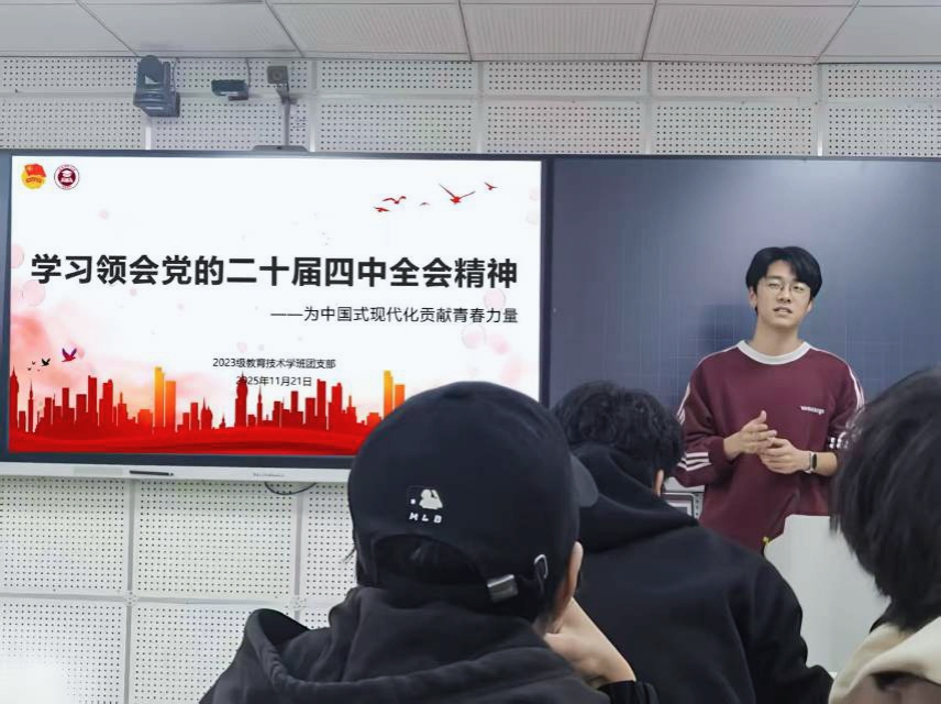 为深入学习贯彻党的二十届四中全会精神,引导支部成员将理论学习与专业实践相结合,11月21日,福建师范大学教育学院2023级教育技术学班团支部以“学习领会党的二十届四中全会精神”为主题开展了一场理论学习交流会。本次活动特别邀请杨宁老师莅临指导,支部成员积极参与,共同掀起理论学习热潮。