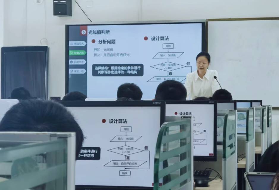 抵达附属中学后,在相关负责人的引导下,支部成员进入教室近距离观摩陈诗茹学姐的教学全过程。课堂上,陈诗茹学姐娴熟运用任务驱动教学法,巧妙融合现代教育技术与学科教学内容,从精准的教学目标设定到灵活的课堂任务探究,从精心设计的教学环节到恰到好处的评价反馈,每一处细节都让支部成员深受启发,认真记录教学亮点与感悟。观摩结束后,专业教师马子璘老师与附属中学的资深教师共同组成点评团队,针对陈诗茹学姐教学过程中观察到的教学亮点与不足展开深入剖析。教师们既肯定了陈诗茹学姐的教学优势,也从专业角度提出了优化建议,同时结合教育技术学专业特色,为支部成员详细讲解了如何做好课程情境导入,如何抛出有效问题,如何落实教学知识链的讲解,以及如何根据学生认知特点设计教学活动等关键问题。
