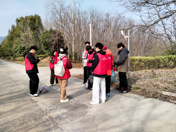 当天下午2点,参与活动的志愿者们准时在土建楼门口集合。组织者为大家统一发放防护手套,提醒大家注意活动安全与环保规范,并明确本次活动路线与任务分工。志愿者们自备垃圾袋,精神饱满、整装待发,随后一同徒步前往十里长山。