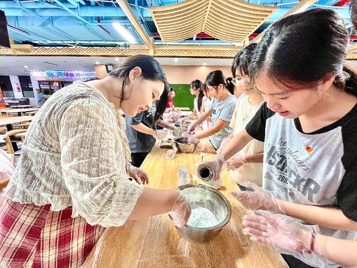 (图为支部成员进行月饼皮制作 蓝灵巧 供图)