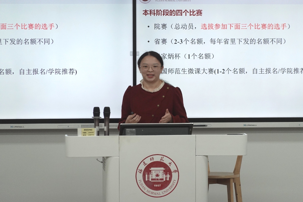 活动伊始,董涛老师就师范生就业形势与教学技能提升进行发言。董涛老师通过福州、厦门两地近两年的教师招聘数据,分析当前就业环境的机遇与挑战,鼓励同学们尽早明确职业目标,系统备考教师招聘考试。同时,深入探讨了人工智能时代对教师职业的影响,指出未来教师角色将更侧重于个性化引导与情感交流,并强调善用AI工具辅助教学的重要性。随后,陈梦婷学姐结合自身参赛经历,系统介绍了国家、省、院三级师范生教学技能竞赛,并总结出片段教学的注意事项。在互动问答环节,支部成员积极提问,现场氛围活跃。