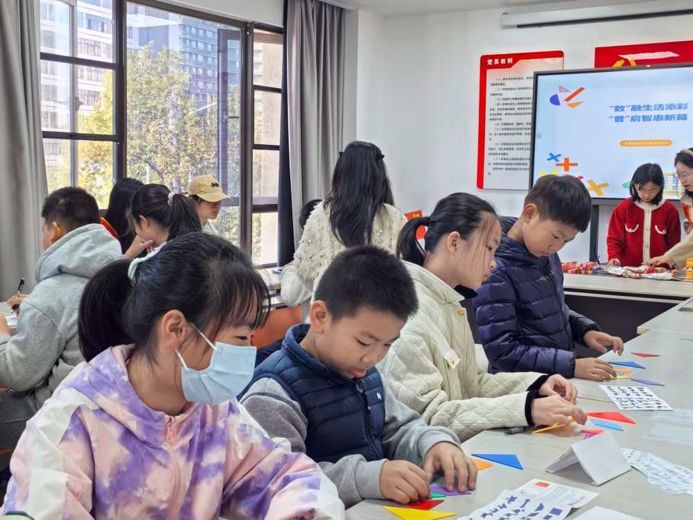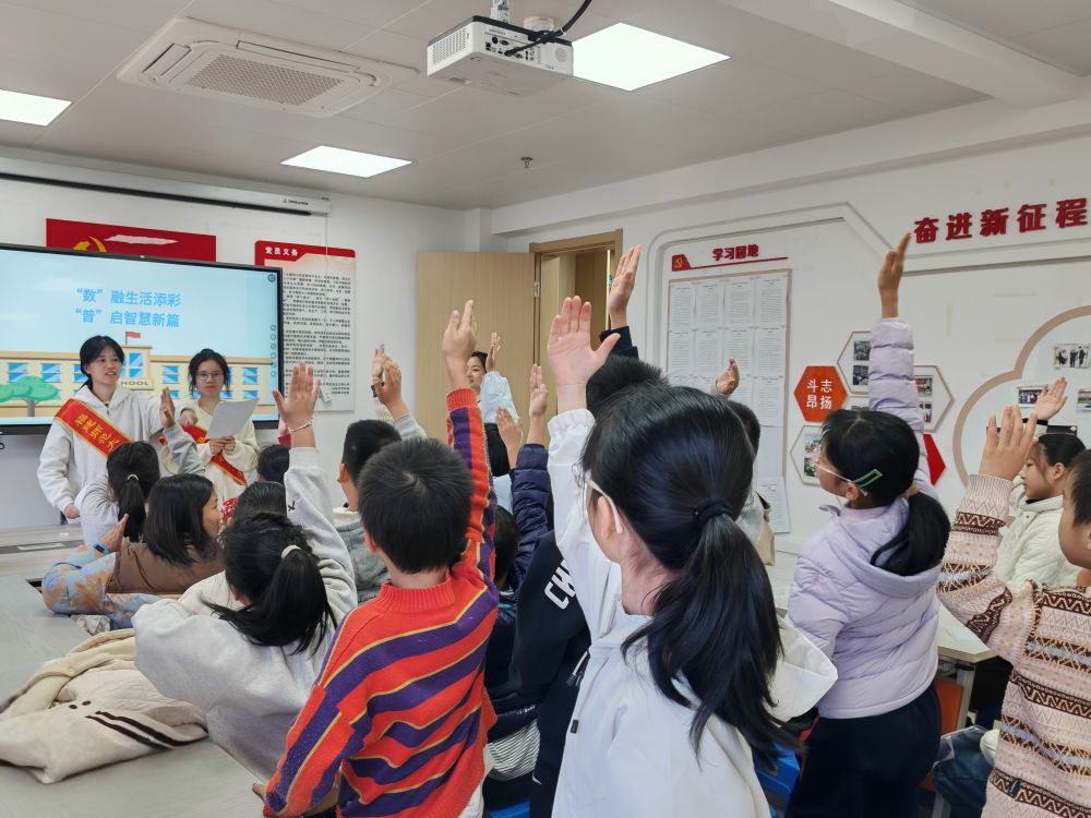 活动设置“数语巧猜”、“寻数辨奇偶”、“扑克牌与24点”、“七巧板趣味拼图”四个互动分区,将大数据生活应用、数据分类、逻辑运算与可视化理念融入趣味游戏,小朋友们在支部成员的引导与讲解下轻松愉快地感知大数据基础原理。互动环节告落后,支部成员协同社区工作人员组织小朋友依序就座,随后举行大数据知识快问快答挑战,现场小朋友们踊跃举手、争相作答,气氛热烈有序。
