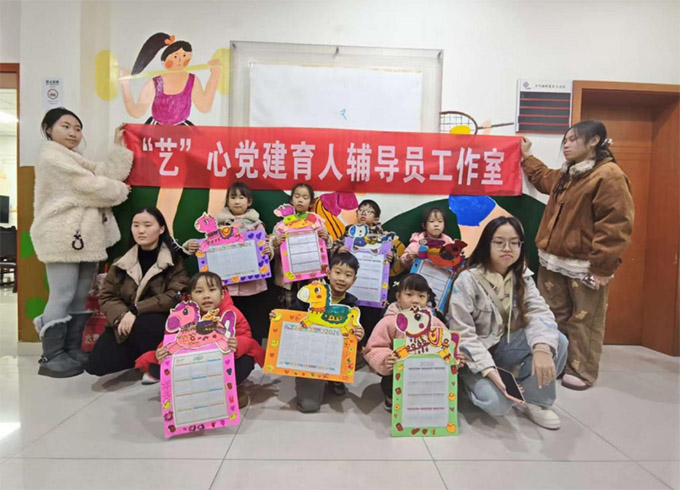 “艺”心党建育人辅导员工作室与孩子们进行合影留念